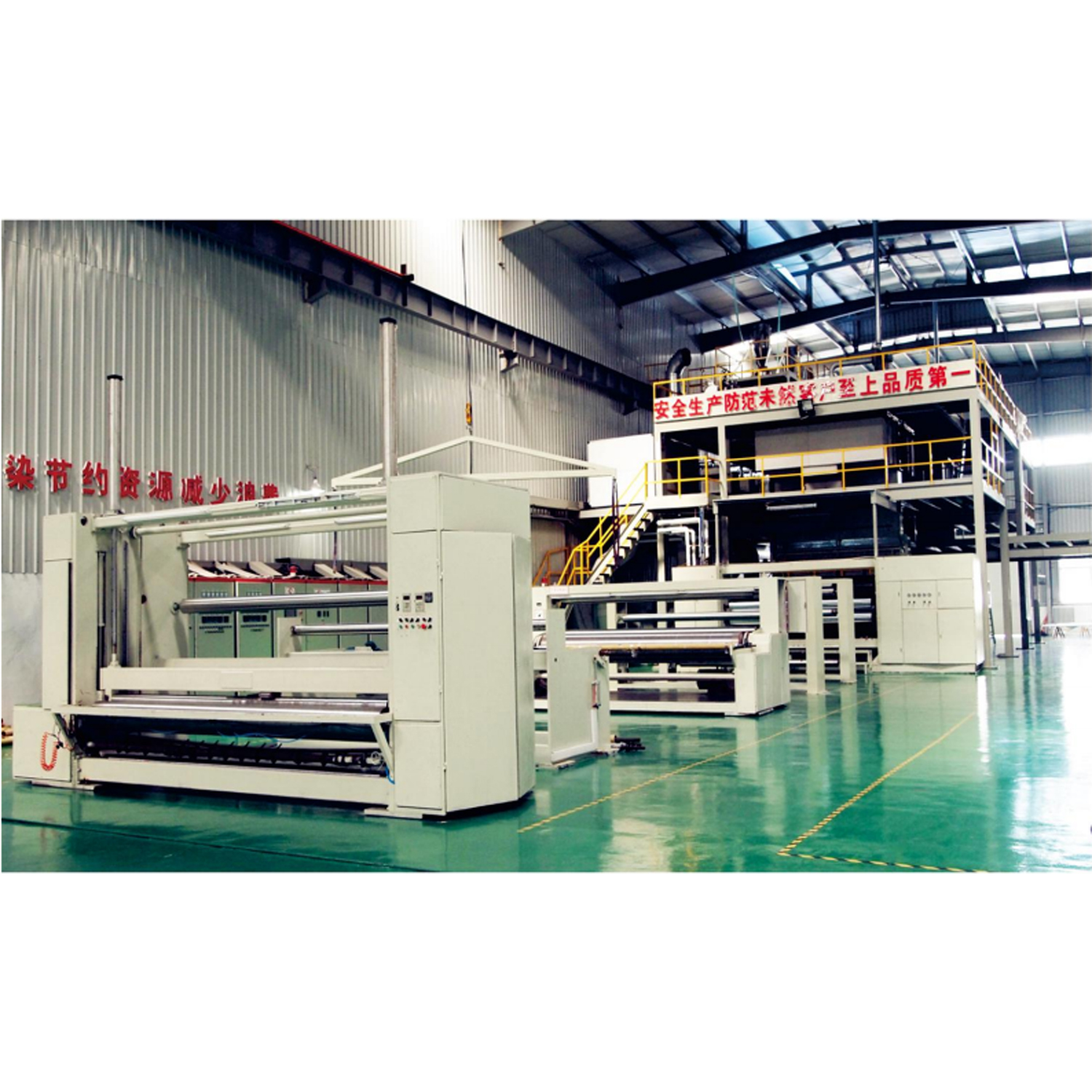 1. SS Nonwoven Machine Adopts an intelligent electrical control cabinet and spinning drafting system. The system controlling mode features in advanced AC frequency-modulated speed, fully digital synchronized communications.